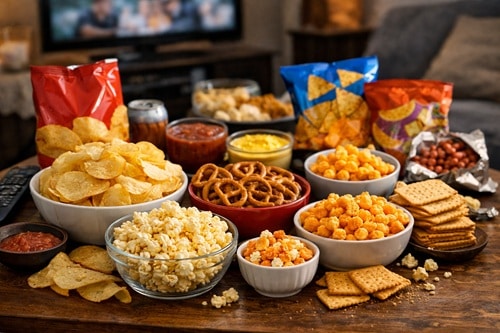 Salty snacks such as chips, pretzels, crackers, and flavored popcorn are common in many households and are often consumed between meals. These foods are typically high in sodium and designed to be convenient and appealing, which can make them easy to overeat. Because they are often eaten mindlessly while watching television or relaxing, it can be difficult to keep track of portion sizes. This can result in consuming far more sodium than intended in a short period of time.